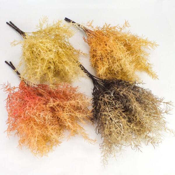 Szárazvirág hatású műnövény csokor. Kisebb-nagyobb dekorációk kiegészítéséhez ajánljuk, de önmagában is természetes hatású, a tavasz és nyár hangulatát idéző dekoráció. Méret: teljes hossz: 36cm szár nélkül: 26cm