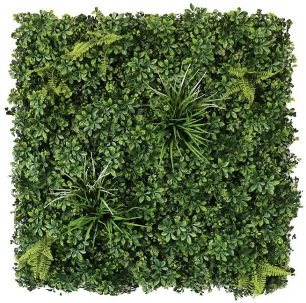 Zöld fal dekoráció Vegetáció schefflera Egy fal vagy kerítés újra természetessé válik a Jungle műanyag sövény zöld műleveleinek köszönhetően. A viszonylag nagyméretű levelek gyönyörű árnyékhatást keltenek a napfényben. Ez a cseppárnyék nagyon természetes megjelenést kölcsönöz a Jungle sövényfalnak. Ráadásul a Jungle művészi sövény telepítése után nem k