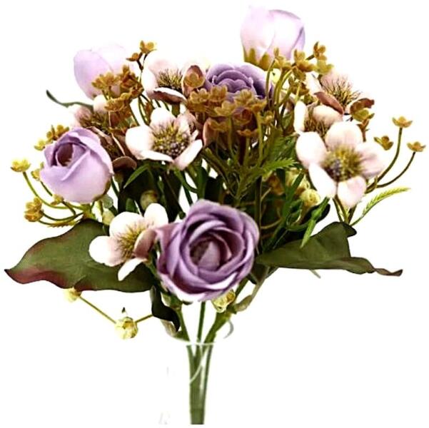 Az V397-es cikkszámmal ellátott lila színű vegyes csokor egy kb. 29 cm hosszú selyemvirág kompozíció, mely tökéletes otthoni dekorációként szolgál. A virágcsokor kiváló minőségű anyagokból készült, így hosszú ideig megőrzi szépségét és frissességét. A lila szín elegáns hangulatot teremt és bármely helyiségben jól mutat.