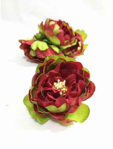 Kb. 5 cm átmérőjű és 4 cm magas, bordó-zöld cirmos babarózsa (selyemvirág) fej. Tavaszi, nyári hangulatú dekorációkhoz. Asztali és ajtódíszekhez, koszorúkhoz, virágboxokhoz, esküvői, ballagási, születésnapi, keresztelői dekorációkhoz, tortákhoz, vagy bármely egyéb dekoratív készítményhez, díszhez kiválóan felhasználható. Az ár 1 db babarózsa fejre vonatkozik