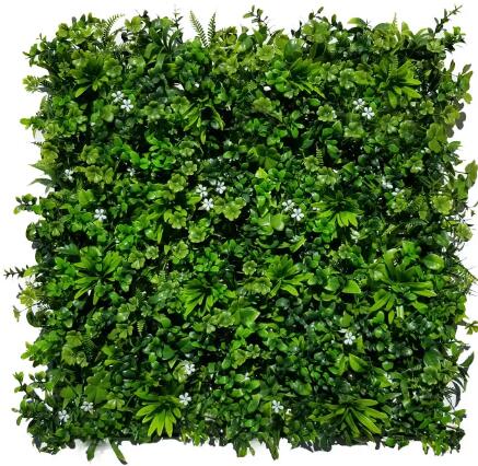 Virágos panel, amely többféle zöldből áll, fehér kis virágokkal. Kiváló minőségű műanyagból készült, szabadalmaztatott Nano-UV© blokkolóval. Ráadásul ennek a mesterséges panelnek a telepítése után nem kell további karbantartást végeznie. A telepítés nagyon egyszerű, csak össze kell kattintania az 50 × 50 cm-es paneleket. Így tetszőleges méretű területet kombin