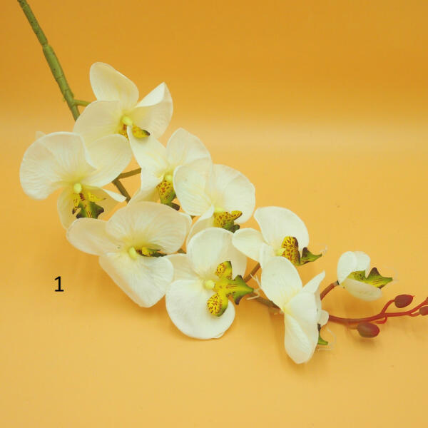 Selyem orchidea szál 8 fejjel, 4 színben. A sorszám a színválasztáshoz a képeken a termék baloldalán található.
