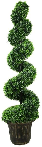 Természetes hatású cserepes dísznövény, prémium minőségű műfa élethű szárral. Puszpáng kihelyezése lehet, kültéren és beltérben egyaránt. A tartócserép igény szerint lehet felszín alatt vagy felszín felett. Ellenál minden időjárási viszontagságoknak. Örökzőld és UV stabil. Szín: zöld Anyag: műanyag Méret: 120 X 30 cm Tipus: Csavartra nyirt hatású buxus S