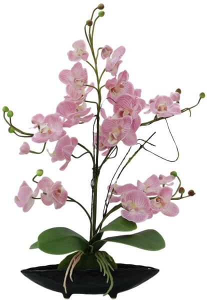 Orchid arrangement with pot Natural look with individual shades Wire core for easy shaping High quality mini-plant On delivery the item is ready for use Suitable for outdoor use With greencolored lifelike leaves purplecolored beautifully flowers