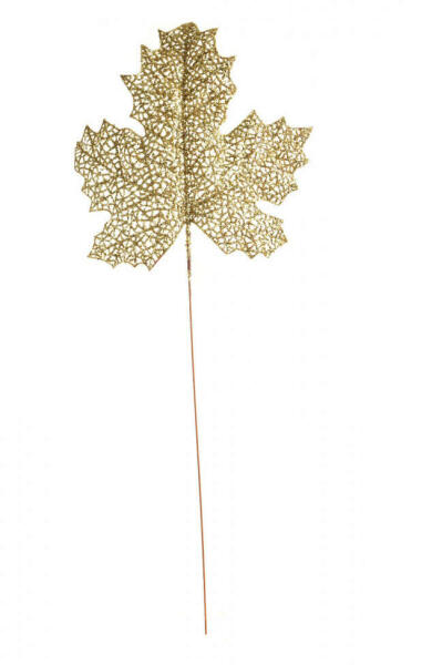 55 cm-es falevél alakú dekorációs tárgy. Csillámporral bevont műanyag falevél hajlékony fém pálcán. Szín:Ezüst
