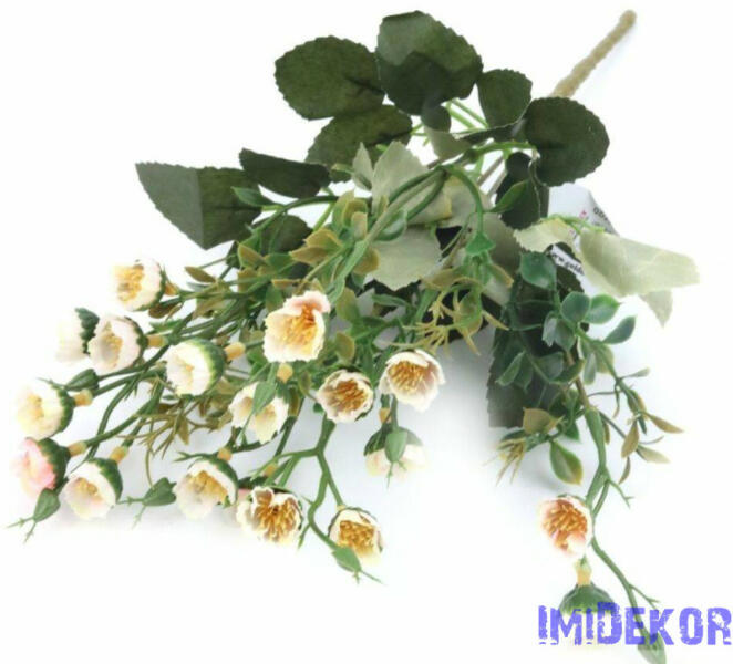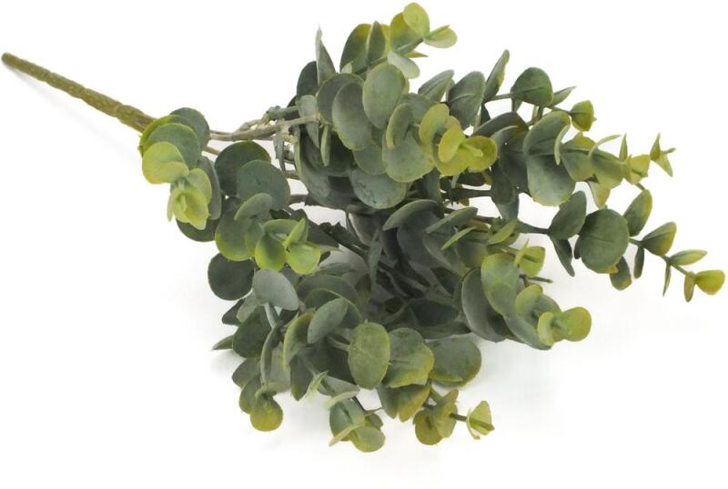 Élethű hamvas eukaliptusz csokor. Kisebb-nagyobb dekorációk kiegészítéséhez ajánljuk, de önmagában is természetes hatású dekoráció. Méret: teljes hossz: 32cm szár nélkül: 18cm