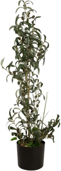 Young olive tree with fruits for Mediterranean flair The approx. 104 cm high, evergreen olive bush from Europalms adds a Mediterranean flair even to simply furnished office and living rooms. It already falls into shape by itself when set up and thus saves you time. Real olive trees belong to the olive family. They have been cultivated for many centuries and are among the oldest known crops. During