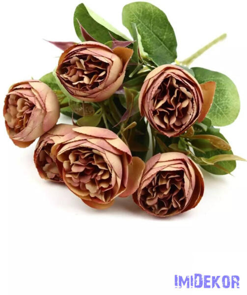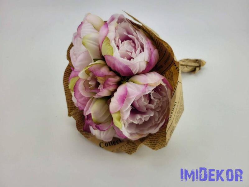 Peónia 7 fejes kötegelt selyem csokor, készre, újságpapírba csomagolva.