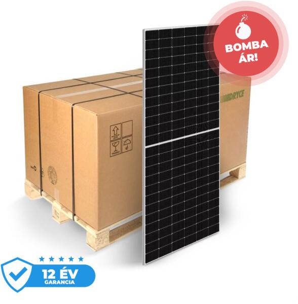 Termék részletekJolywood bifaciális napelem panel raklap | 585W | N-type | Dual glass Kialak ításának köszönhetően mindkét oldalán képes elnyelni a napfényt és átalakítani azt elektromos árammá, így a napsugárzást nemcsak a felső, hanem az alsó oldalról is hasznosítani tudja. Főbb jellemzők: Termék neve: Jolywood bifaciális napelem panel | 585W | N-type | Dual glass Teljesítmény: 585W