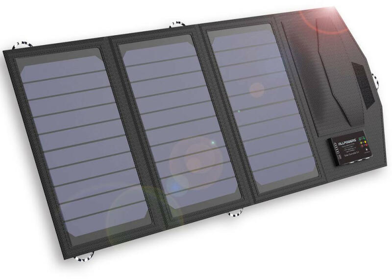 Allpowers hordozható napelemes töltő Az Allpowers hordozható, összecsukható napelemes töltő megnövelt teljesítményt nyújt, és hihetetlenül gyors töltést kínál. Mobileszközök, telefonok vagy táblagépek táplálására tervezték. A beépített powerbank kapacitása akár 10000mAh. Ezzel akár 4 készüléket is tölthet egyszerre. Sokkal nagyobb hatásfokot (23,5%) ér el, min