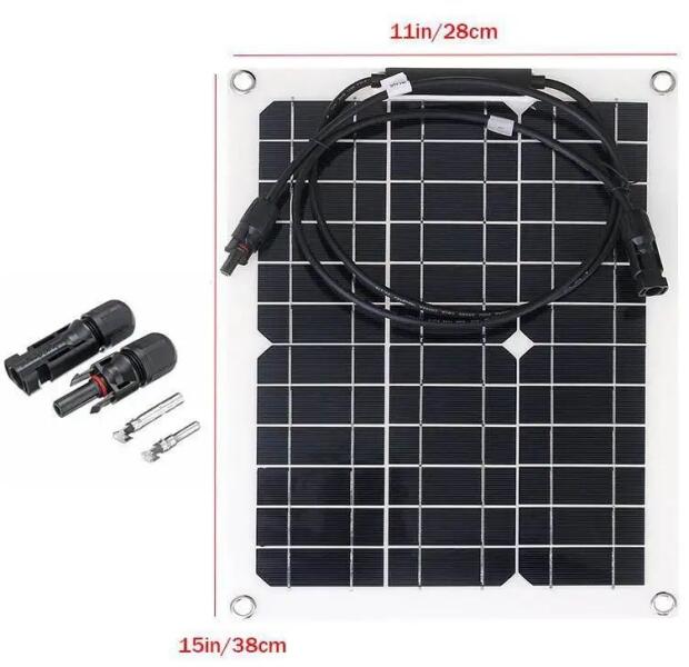 TermékleírásFlexibilis napelem modul 15 w-os teljesítménnyel és csatlakozókkal. Műszaki adatok Max. Teljesítmény (Pm) 15W Max. Feszültség (Vmp) 18V Max. Áram (Imp) 1A Üzemi hőmérséklet -45 C85 C Cellák 3 x Monokristályosak Max. hálózati feszültség 1000VDC Tolerancia 3 Súly 400 g Méret 280 x 380 x 35 mm Csomag tartalma 15W monokristályos napelem modul Csatlakozók Jótáll
