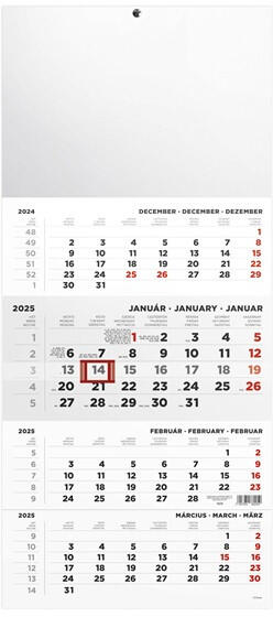 Kalendart 2025 T079 4 havi fej nélkül speditőrnaptár A speditőr falinaptárak a fejrészben standard képpel vagy fehér nyomatlan fejkartonnal kerülnek forgalomba. A naptárháló 3 nyelvű, magyar és nemzetközi ünnepek jelölésével, 4 hónapos egytömbös kialakítással, csúszkával. Egyediesítés: az ajánlott kép helyett, a cégre jellemző képpel vagy emblémával is kérhető