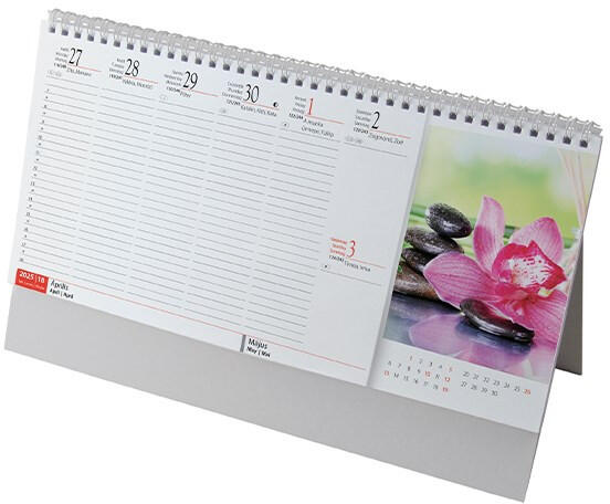 -méret: 190x220 mm-tartalom: 12 lap + boritó + képösszefoglaló + hátkarton-kivitel: 135 g műnyomó, 4 színnyomás-fűzött, egyenként fólia tasakban-naptár rész: magyar, angol, német nyelven, magyar ünnepekkel és névnapokkal