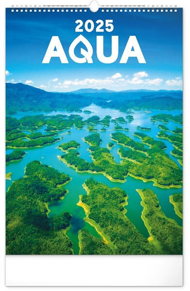 Realsystem 2025 Aqua 6094-AQ falinaptár Falinaptár, ikerspirál kivitel, nemzetközi, 14 lap. Méret: 33x46 cm, reklám felület: 33x6 cm