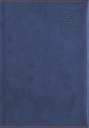 Realsystem 2025 Magyarország 7991-04 képes kék asztali naptár Ikerspirállal összefűzött naptárak heti beosztással, 12 színes képpel, színes műbőrrel borított fekvő tartóval. 56 lapos, spirálozott, 70g-os fehér papírral. Egyediesítés: présfólia, vakdombor, szita. Méret: 320x155 mm, reklámfelület a tartó hátsó oldalán 320x50mm.