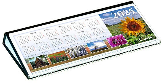 Asztali naptár képes CSÍZIÓ fekvő fehér lapos idézetes bőr hatású Öko hátlap fekete 2025. Képes asztali naptár. 53 lapos, fekvő kivitel. Hátlap: bőr hatású Öko karton. Szólásokkal, telefonregiszterrel és holdfázis jelöléssel. Méret: 310x160x90 mm. Reklámfelület: 300x43 mm.
