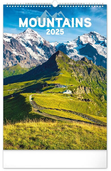 Realsystem 2025 Mountains 6094-MO falinaptár Falinaptár, ikerspirál kivitel, nemzetközi, 14 lap. Méret: 33x46 cm, reklám felület: 33x6 cm