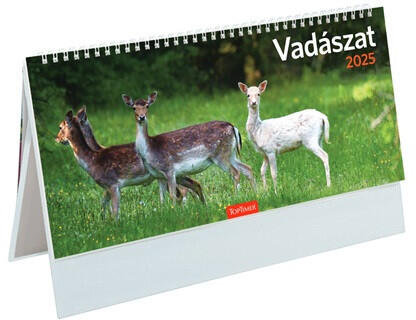 Kalendart 2025 T054 Vadászat álló papír asztali naptár Papírtáblával készült, fehér tömbös, álló, csonkalapos asztali naptár. Egyoldalas nyomás, heti beosztás, 58 lap, összesítő éves naptár (aktuális+következő). Szitázással, vak- vagy présfólianyomással emblémázható. Tömbméret: 325x155 mm, reklámfelület mérete: 330x40 mm