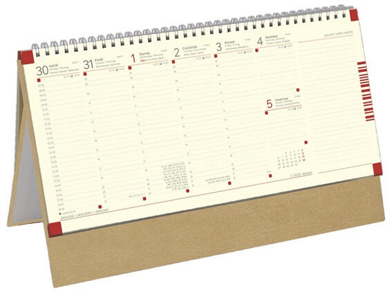 Kalendart 2025 C051 jegyzettömbös bézs sárga papíros álló asztali naptár Műbőr táblával készült, chamois (krémszínű) tömbös, álló asztali naptár, perforált jegyzettömbbel. 54 lap, heti beosztás, összesítő éves naptár (aktuális+következő). Szitázással, présfólia- és vaknyomással emblémázható (reklámfelület: 330x40 mm). Méret: 325x155 mm