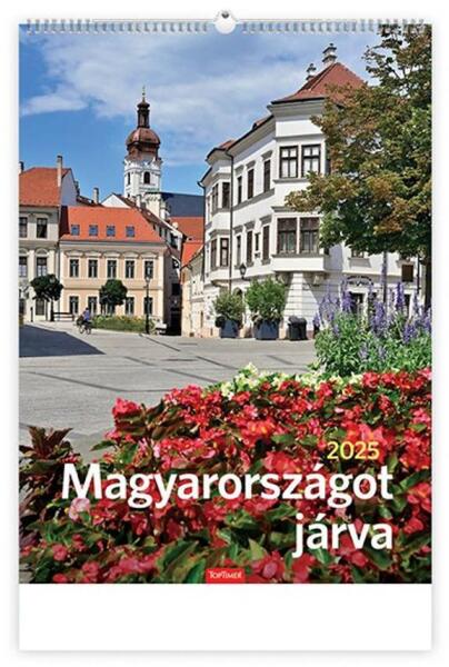 B4 méretű (álló formátum), spirálozott képes falinaptár, 12 hónap, ünnepekkel, névnapokkal, fém akasztóval, 235x330 mm