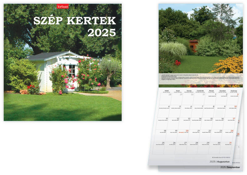 Válogatott, gyönyörű képekkel, kiváló minőségű papírral, erős hátkartonnal és fém ikerspirállal készült falinaptárak. A falinaptárak piskóta füles, átlátszó tasakban kerülnek szállításra. méret: 340x325 mm lapok 130 g-os, műnyomó papírból spirálozott hátlap anyaga 675 g-os, karton reklámfelület: 340x70 mm