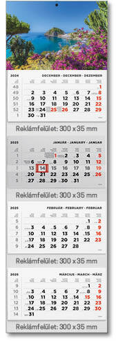 Falinaptár speditőr T073, 4 részes, képes, Táj 4 tömbös 4 havi speditőr falinaptár fejrészben standard képpel. A naptár kiterített mérete: 315 x 1065 mm. Fejrész képe: táj