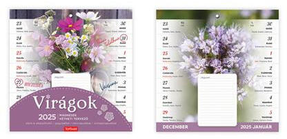 Naptár, fali, mágneses, kétheti, TOPTIMER, virágok Hűtőre, mágnestáblára, radiátorra, falra is akasztható képes családi tervezőnaptár. Méretéből adódóan könnyen kezelhető. -kéthetes beosztás -27 téphető lap -népszerű témák -jól írható papírfelület -magyar naptárháló -méret: 220x220 mmTípusafalinaptárMéret220x220 mmBeosztáskéthetiSzínmintásAnyagpap r al