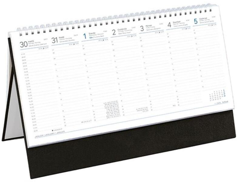 Naptár, asztali, fekvő, DAYLINER, "Oktáv" Minden irodában nélkülözhetetlen. Senki sem vitathatja, hogy az asztali naptárak az irodavilág egy leghasznosabb segítői. Ha Önnek fontos a pontosság, az időpontok betartása és ezáltal az ügyfelek elégedettsége, akkor a cég egyik asztaláról sem hiányozhatnak ezek a tervező alkalmatosságok. -időbeosztás: félórás, 8-17.00 h -ma