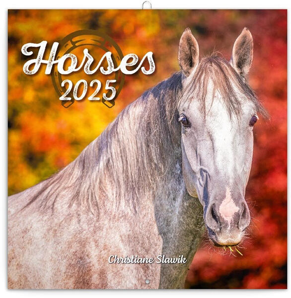 Realsystem 2025 Horses 6097-HO falinaptár Lemeznaptár, omega kapoccsal tűzött, 6 nyelv, 16 hónap, 14 lap. Méret: 30x30 cm / nyitva 30x60 cm