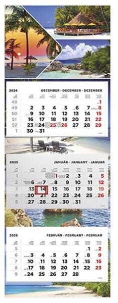 3 tömbös, 3 havi falinapár, színes hátlkartonnal. A naptár teljes mérete: 315x852 mm