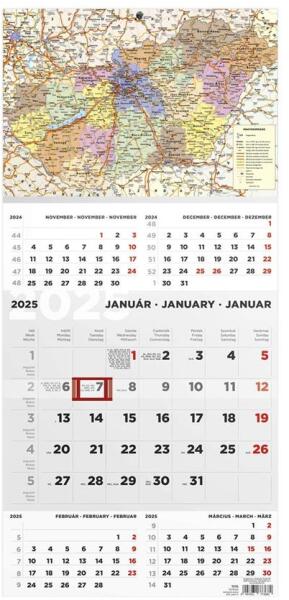 Kalendart 2025 T074 3 tömb Kastély speditőrnaptár A speditőr falinaptárak a fejrészben standard képpel vagy fehér nyomatlan fejkartonnal kerülnek forgalomba. A naptárháló 3 nyelvű, magyar és nemzetközi ünnepek jelölésével, 3 hónapos, háromtömbös kialakítással, csúszkával. Egyediesítés: az ajánlott kép helyett, a cégre jellemző képpel vagy emblémával is kérhet