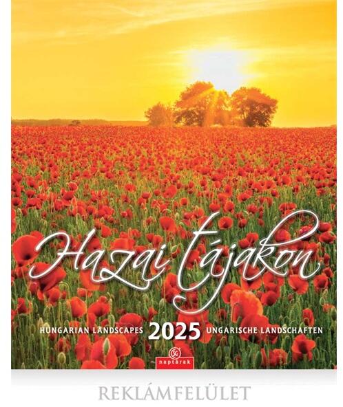 Realsystem 2025 Magyarország 7991-09 képes bordó asztali naptár Ikerspirállal összefűzött naptárak heti beosztással, 12 színes képpel, színes műbőrrel borított fekvő tartóval. 56 lapos, spirálozott, 70g-os fehér papírral. Egyediesítés: présfólia, vakdombor, szita. Méret: 320x155 mm, reklámfelület a tartó hátsó oldalán 320x50mm.