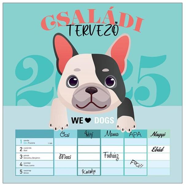 Színes, vidám grafikákkal díszített, matt fóliával bevont tematikus, fehér tömbös heti naptár a borító színvilágával harmonizáló oromszegővel, jelzőszalaggal és sarokperforációval. Színes, vidám grafikákkal díszített, matt fóliával bevont tematikus, fehér tömbös heti naptár a borító színvilágával harmonizáló oromszegővel, jelzőszalaggal és sarokperforác