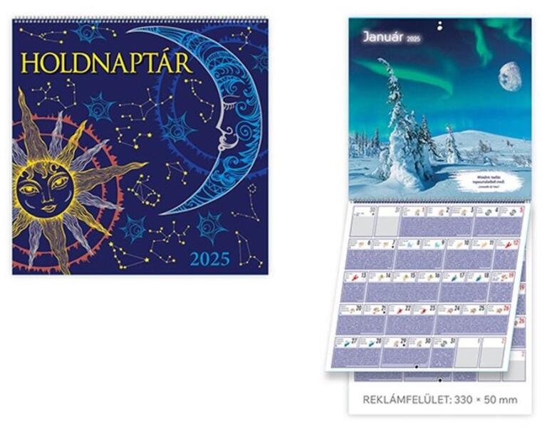 Magyar naptárháló, 14 lapos, 330 × 330 mm-es lapok. A Holdnaptár mindennapi tevékenységeinkhez szolgál hasznos útmutatóval.