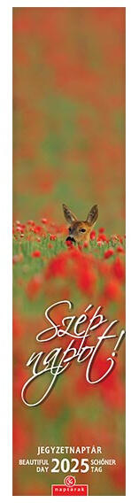 Falinaptár CSG 110x480mm álló Szép napot jegyzet 2025. Spirálozott, egyenként fóliatasakban. Naptárrész: magyar, német, angol nyelven, magyar ünnepekkel és névnapokkal. Kivitel: 135 g-os műnyomó, 4 színnyomás, fűzött. Tartalom: 12 lap+ borító+ képösszefoglaló+ hátkarton. Méret: 110x480mm.