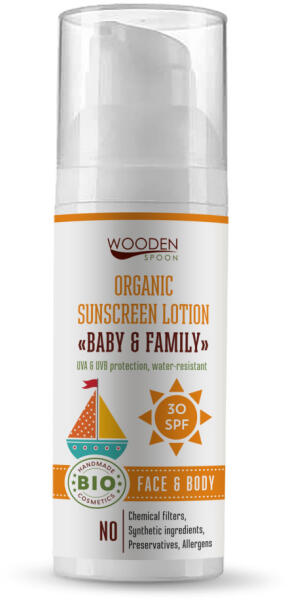 Wooden Spoon bio naptej és testápoló spf 30 50 ml A biztonságos és hatékony védelem napozáshoz ellenőrzött organikus vajakkal, természetes E-vitaminnal és nem-nano cink-oxiddal. Ez a termék nem tartalmaz kémiai fényszűrő anyagokat, szintetikus összetevőket, allergéneket, sem tartósítószereket. Úgy gondoljuk, hogy receptünk a legnagyobb biztonságot nyújtó természetes me