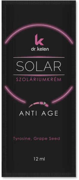 Dr. kelen sunsolar antiage krém 12 ml Kettős hatású készítmény, amely a szoláriumozáskor elérhető látványos, dekoratív barnaság fokozása mellett bőr öregedést gátló összetevőket is tartalmaz. A multi-active E-vitamin szabadgyökfogó hatása megelőzi a sejtek károsodását, a bőröregedés gátló szőlőmag-kivonat és ATP pedig segíti a hámszövet regenerálódását,