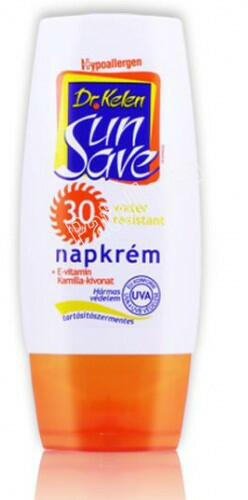 SunSave F30 napkrém 100 ml. Erős fényvédő hatású napkrém véd a napsugarak UVA, UVB és szabadgyök-képző hatásai ellen, ezáltal védi a bőrt az idő előtti öregedéstől, csökkenti a káros bőrelváltozások kialakulásának kockázatát. Hármas védelmet biztosít, fotostabil kémiai- és mechanikai fényvédő anyagokat, ezek hatását kiegészítő E-vitamint tartalmaz. Vízt