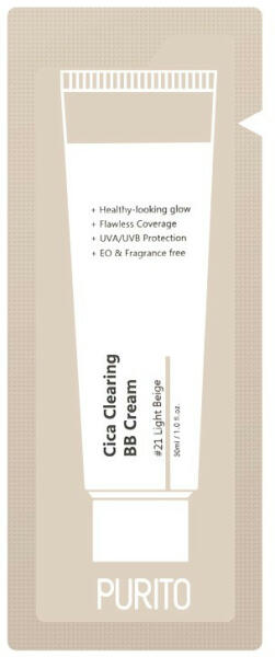 Biztosra akarsz menni a megfelelő szín kiválasztásánál? Rendelj először mintát a Purito Cica Clearing BB krémből, hogy könnyebb legyen a választás. A PURITO Cica Clearing BB krém könnyed állagának köszönhetően kényelmes viseletet biztosít egész napon át. Elfedi a foltokat, kiegyenlíti a bőrtónust és egészséges ragyogást ad a bőrnek. A PURITO Cica Clearing BB krém