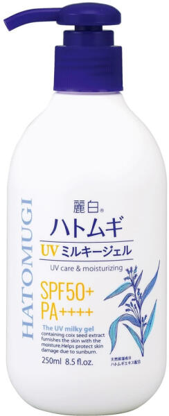 Ez a fényvédő gél természetes hidratáló komponenst, Hatomugi (árpagyöngy) kivonatot és hialuronsavat tartalmaz. Segít védeni a bőrt a leégés okozta károsodástól. A szappan elegendő a fényvédő gél eltávolításához. Coix Lacryma-Jobi Ma-yuen Seed Extract (Hatomugi): A gyöngyárpa kivonat gazdag fehérjében, esszenciális aminosavakban és tápanyagokban (pl. kalciumban, v
