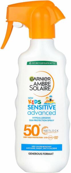 Garnier Ambre Solaire Napozó spray gyerekeknek FF50 erős védelemmel, 300 ml Megbízható védelem a gyermekek érzékeny bőrére. A gyermekek bőre, különösen a csalóka napsugarak miatt, fokozott odafigyelést igényel. A Garnier Ambre Solaire Kids Sensitive napozókrém széles spektrumú napsugárzás elleni védelmet biztosít az érzékeny gyermekbőr számára, ezért ideális válasz