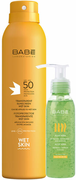 Áttetsző fényvédő spray SPF 50. Magas UVA-UVB védelem azonnali felszívódással még nedves bőrön is. Nem hagy fehér foltot. Száraz bőr esetén is alkalmazható. A BABÉ tanácsa: általában napozás előtt 20 perccel alkalmazza. Igény szerint ismétel je a száraz vagy akár nedves bőrfelületen. Figyelmeztetés: Kerülje a szemmel, nyálkahártyával és a ruhával való érintkez