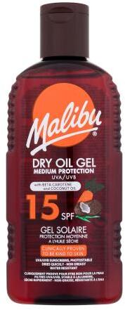 Védje a bőrét a Malibu Dry Oil Gel With Beta Carotene and Coconut Oil fényvédő gélolajjal. Segít megakadályozni az UVA- és UVB- sugarak okozta sejtkárosodást, így megelőzi a bőrkárosodást. Hidratálja és táplálja a bőrt amely a hatására selymesen puha, elégedett és védett lesz.
