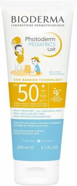 A 200 ml-es Bioderma Photoderm Pediatrics SPF 50+ spray kiváló segítség az érzékeny gyermeki bőr védelmében a nap káros hatásai ellen. A SUN BARRIER technológiának köszönhetően széles spektrumú UVA- és UVB-védelmet nyújt, antioxidáns védelmet biztosít a szabad gyökök ellen, és támogatja a bőr természetes védőrétegét. A készítmény akár 8 órán át hidratál,