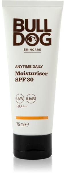 Bulldog Anytime Daily Moisturise SPF30, 75 ml, Napsugárzás elleni védekezés férfiaknak, A minőségi Bulldog Anytime Daily Moisturise SPF30 készítmény a legjobb ápolást nyújtja az arcbőrének. Tulajdonságok: regenerál és vitalizál gyorsan felszívódik mélyrehatóan táplálja a bőrt megerősíti a bőrgátat UV-sugárzás elleni védelmet nyújt Használata: Vigye fel a megtiszt