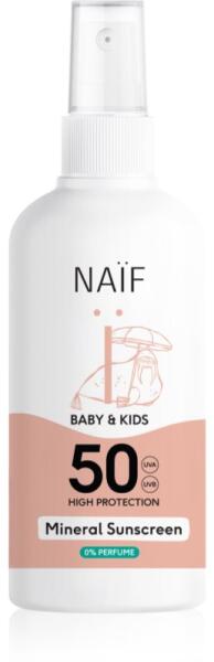 Naif Baby & Kids Mineral Sunscreen SPF 50 0 % Perfume, 100 ml, Napvédő kozmetikumok gyermekeknek gyermekeknek, A napozókészítmény a baba bőrének tökéletes napsugárzás elleni védelemét szolgálja. Tulajdonságok: UVA és UVB sugárzástól is védi a bőrt kíméli a babák érzékeny bőrét arcra és testre is használható hidratálja a baba bőrét táplálja és ápolja a bő