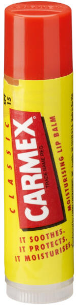CARMEX AJAKÁPOLÓ STIFT 4,25 GSzilárd állagú hidratáló ajakbalzsam, mely SPF 15 fényvédővel van ellátva. Gyógyítja és fertőtleníti a herpeszt és megelőzi annak kialakulását. Könnyedén felkenhető és krémesen hidratál. Megnyugtatja és hűsíti az ajkakat a mentol és a kámfor segítségével. Az egyik legjobb és legpraktikusabb választás a mindennapokhoz. EU felelős sz