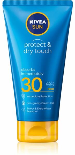 Nivea Sun Protect & Dry Touch, 175 ml, Napsugárzás elleni védekezés nőknek, A kiváló minőségű Nivea Sun napvédő készítmény napon tartózkodás esetén elengedhetetlen kelléke a bőrápolásnak. Tulajdonságok: UVA és UVB sugárzástól is védi a bőrt támogatja a természetes barnulási folyamatot vízálló készítmény könnyen szétkenhető és nem hagy zsíros filmet a
