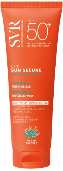 SVR Sun Secure Lait Tulajdonságokláthatatlan hidratáló tej a napra túlérzékeny bőrrenagyon magas fényvédelmet nyújt UVA, UVB, látható spektrum, infravörös ellencsecsemők, gyermekek, felnőttek, arc és test napérzékeny bőrérebársonyos textúra, amely azonnal behatol a száraz és láthatatlan felületbefinom nyári illatnem tartalmaz allergéneket, alkoholt, parabéneket vagy