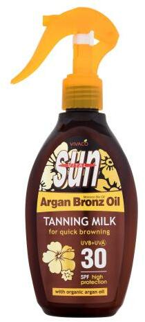 Védje a bőrét az UVA- és az UVB-sugarak káros hatásaitól a Vivaco Sun Argan Bronz Oil Tanning Milk naptejjel. Segít megakadályozni a bőrégést és a napfény okozta korai bőröregedést. Kellően hidratálja a bőrt és az argánolajnak köszönhetően meggyorsítja a barnulást napozás után.